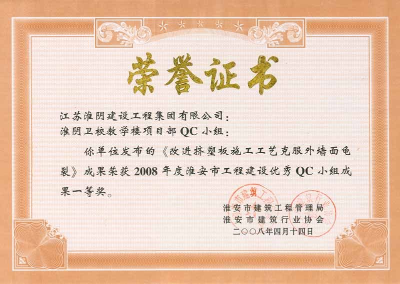 2008年市级QC一等奖(淮阴卫校教学楼-改进挤塑板施工工艺