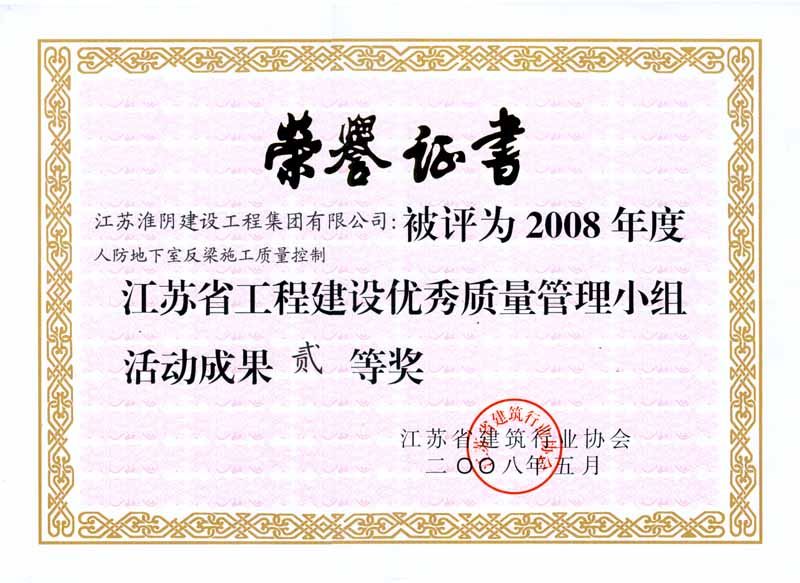 2008年省工程建设优秀质量管理小组活动成果贰等奖-人防地