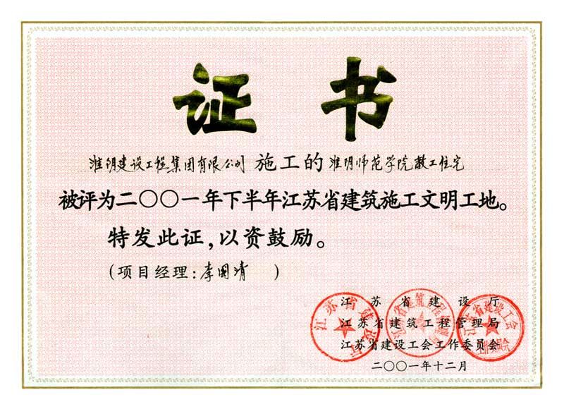 2001年度省建筑施工文明工地淮阴师范学院教工住宅-李国清