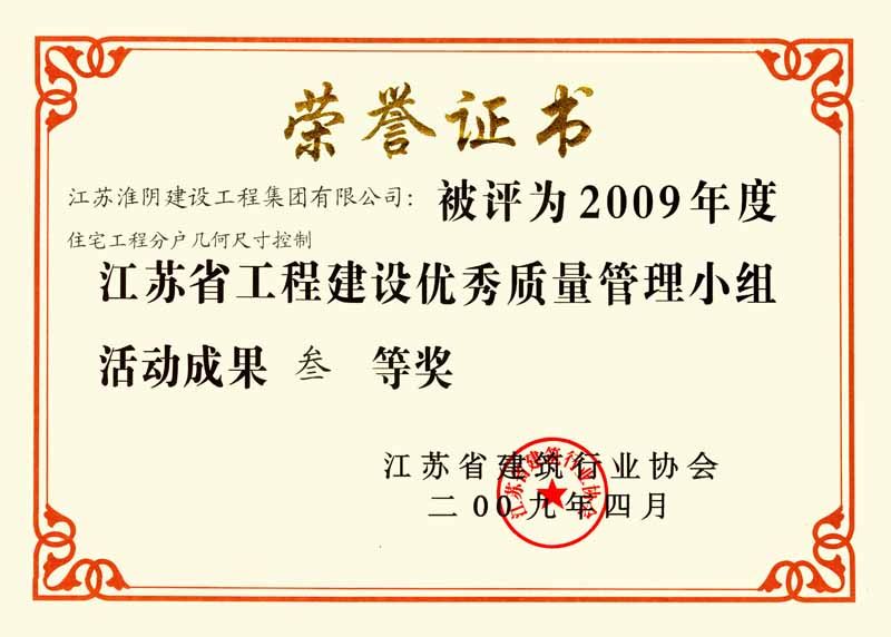 2009年省QC三等奖(住宅工程分户尺寸控制)
