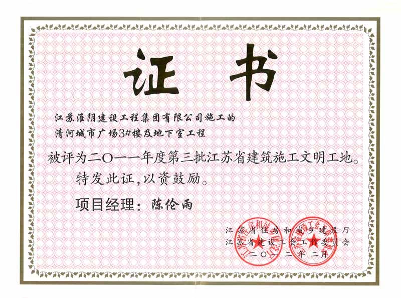 2012年省建筑文明工地清河城市广场3#楼及地下室工程-陈伦雨
