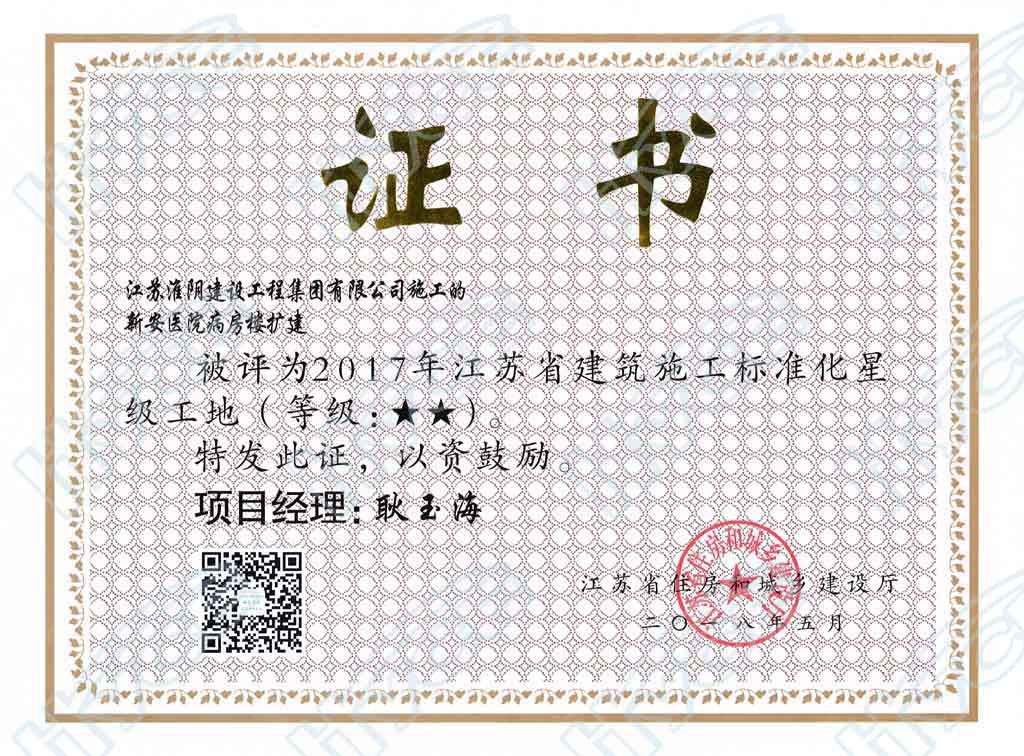 2017年江苏省建筑工程施工标准化星级工地(等级★★)