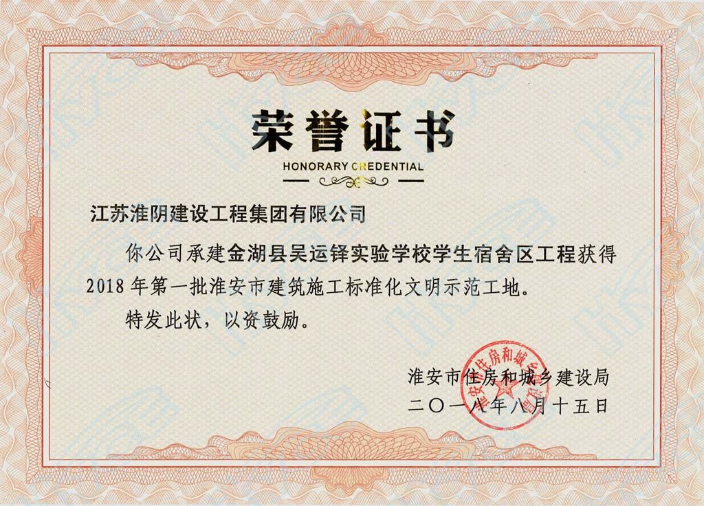 淮安市建筑施工标准化文明示范工地-金湖吴运铎实验学校学生宿舍区
