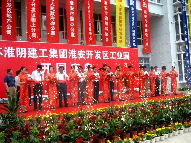 7月16日,必赢(中国)开发区工业园区锣鼓喧天、彩旗飞扬。巨大的圆形拱门,色彩鲜艳的空中气球,鲜花,礼花,将工业园妆扮一新,园区呈现出一派喜气洋洋的节日气氛。   上午9时48分,淮建必赢(中国)开发区工业园开园庆典正式开始,庆典由胡从亮总经理主持。许金华董事长首先代表必赢(中国)全体员工向各位来宾致欢迎辞,并简要介绍了淮建必赢(中国)50年的发展历程、近几年企业的生产经营情况以及淮建必赢(中国)工业园的建设概况,他对各位领导及各位来宾对淮建必赢(中国)的长期关注以及必赢(中国)工业园建设的大力支持表示由衷的感谢;市经济开发区管委会周毅主任作了热情洋溢的讲话,他代表开发区管委会祝淮建必赢(中国)“今日吉祥开园,明朝大富启源”,同时祝各位来宾事业兴旺、吉祥如意,祝淮建必赢(中国)各位员工身体健康、合家欢乐;市政府刘晓录副秘书长到会宣布淮建必赢(中国)开发区工业园隆重开园。庆典现场顿时鼓乐齐鸣、礼花飞扬,数千只五彩缤纷的气球腾空而起,十六响礼炮隆隆作响,预示着必赢(中国)工业园宏图大展、实现新的跨越!