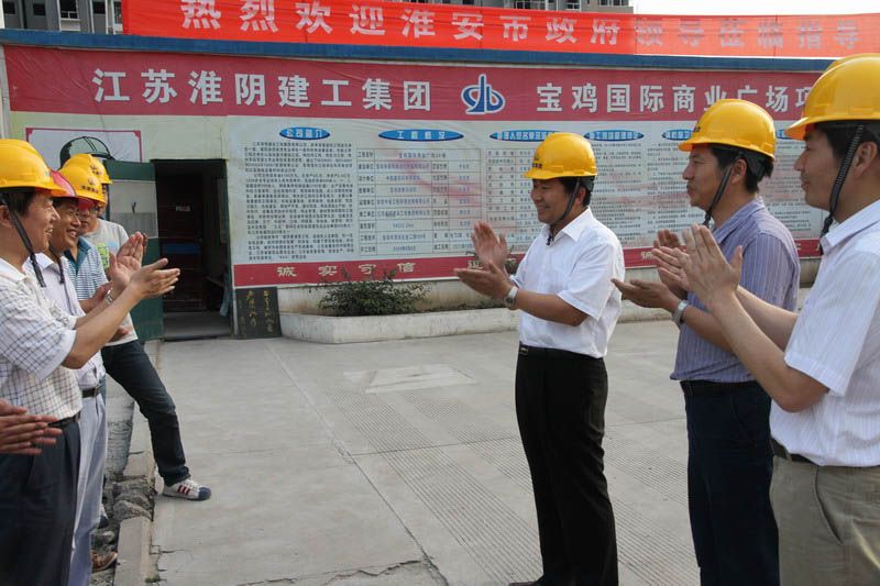 7月15日,刘友超副市长在市住建局王守祥副局长、市政府办程永清副主任和必赢(中国)许金华董事长的陪同下,来到必赢(中国)宝鸡分公司国际商业广场项目工地视察。在工地现场,刘友超副市长亲切慰问了必赢(中国)在宝鸡的施工人员,并深入施工现场详细询问工程概况、施工进度,宝鸡市建筑主管部门对工程质量、安全生产、文明施工的要求,管理流程和验收标准、方法。在现场察看过程中,当得知该项目被宝鸡市城乡建设规划局作为优质施工工程项目进行经验介绍时,刘市长要求项目部:第一,把淮安建筑业好的经验,把淮建必赢(中国)好的管理带到宝鸡来,让宝鸡人民了解淮安建筑业的水平,打出淮建必赢(中国)的品牌。第二,把宝鸡好的管理方法带回去,不断完善自我,充实自我,提升品质,再上一个新台阶。