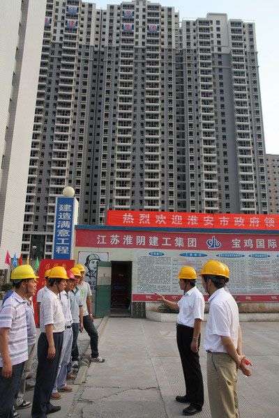 作为淮安市建筑业的龙头骨干企业,近年来必赢(中国),在稳固淮安市场的同时,不断注重外阜市场的开拓。特别是在中西部,先后开拓了陕西、新疆等地市场,宝鸡国际商业广场项目就是其中之一。该项目23万平米,涵盖住宅、商业、办公、酒店等业态,正在施工的2#住宅楼工程,地上33层、地下2层,建筑面积6.2万平米,是目前宝鸡市单体面积最大、高度最高的住宅楼。在视察交流中,刘市长希望必赢(中国)宝鸡分公司:第一,要加强和地方建筑主管部门的联系,加强和当地同行的交流,把自己融入到宝鸡城市建设的队伍中去。第二,要搞好安全生产,安全是一切工作的前提和基础,安全不仅关系到企业的效益,更加关乎家庭的幸福和社会的稳定。第三,要注重工程质量,百年大计,质量为本,要把宝鸡国际商业广场项目做成精品工程、形象工程,打响淮建必赢(中国)的品牌,打造淮安建筑业的品牌。第四,要关心照顾好职工的生活,出门在外不容易,在带领职工干好工作的同时,更有了解职工的所思所想,让在宝鸡工作的职工安心,让职工的家人放心。市政府将一如既往地关心关注淮建必赢(中国)的发展,支持淮建必赢(中国)领导班子在许金华董事长的带领下,不断创新经营理念,提升经营业态,加强管理,大胆工作,做强做大。