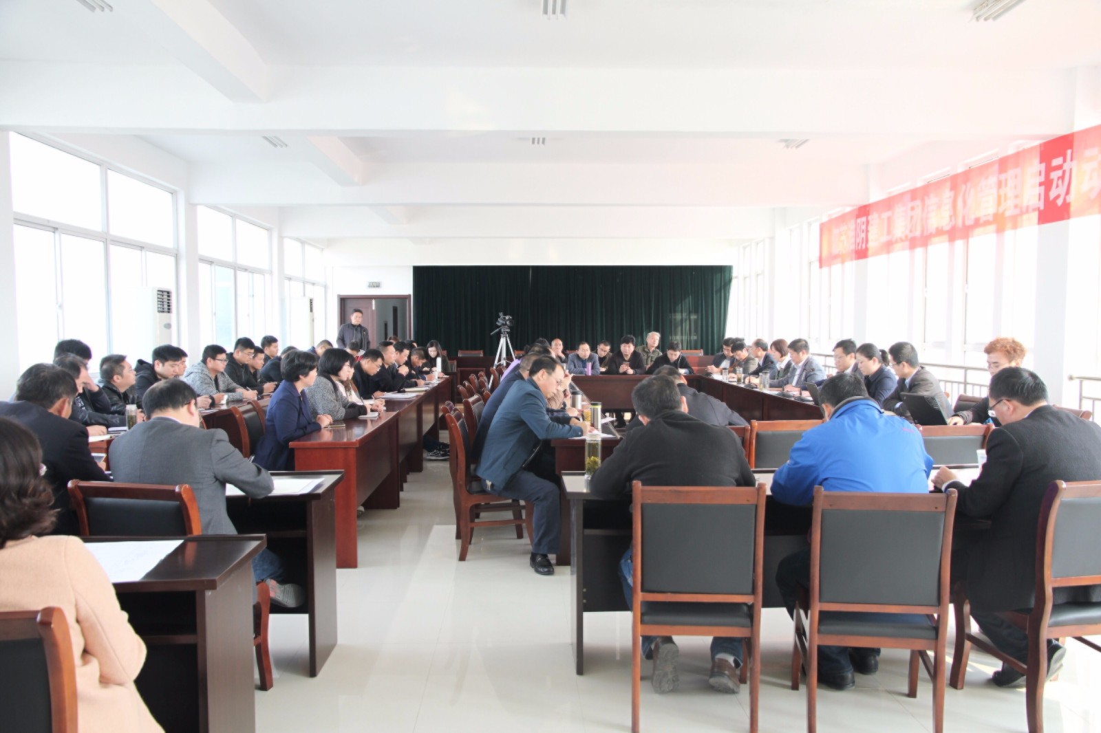 最后胡从亮董事长发表讲话。他首先从具体案例讲起,进一步强调信息化管理的重要性与必要性,把管理风险降至最低,不能犯重复性的错误。然后他就必赢(中国)信息化管理的目标强调六点,一是便于必赢(中国)领导了解项目进度、合同、成本执行情况;二是进行工程成本控制与分析,使其控制在预定的范围内;三是应用项目管理工具,控制工程进度、合同、成本,使各项费用得到有效控制;四是建立项目沟通平台,准确、及时共享在建项目信息,以提高工作效率;五是以合同为核心,规范履约过程,提高合同管理过程中的规范化,逐步建立电子流程化审批;六是利用知识管理,逐步积累项目管理各项信息,为决策提供依据,通过大数据管理,优选劳务分包商、材料供应商、工程分包商。最后,就必赢(中国)信息化管理的推进和落实,胡从亮董事长提出五条要求,一是加强领导。从必赢(中国)领导开始,从领导班子开始,从实施小组开始,分布实施,先在必赢(中国)分公司和项目部推进信息化,子公司也要研究和推进信息化工作。全体同志要认真学习,弄懂原理,主动融入,服从大局;二是加强培训。新时代新阶段,信息化是新知识新课题,要拿出科学实用的培训计划,开展针对性的培训;三是加大投入。必赢(中国)总部毫不吝啬投入,分公司、项目部为信息化而必须的专项投入费用经马跃红总工和李锦柱总经理批准后可以抵充管理费;四是加强试点。先拿一个分公司、一两个项目试点,积累经验,总结教训,总结出淮建特色的信息化管理经验,由点到面推广到分公司和项目部;五是加强考核。请信息化管理领导小组拿出考核办法,奖惩分明,全力推进。