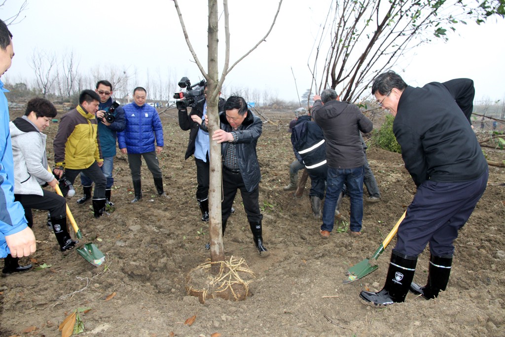 上午9时许,姚晓东、蔡丽新、王维凯、李晓雷、赵洪权、李伟、李森、周毅等市四套班子领导,与广大干部群众、驻淮部队官兵、高校青年志愿者等一道,来到义务植树地点——白马湖森林公园露营文化服务基地,穿上雨靴,拿起铁锨,走过泥泞的土路,在一棵桂花树苗旁,挥动铁锨,奋力铲土。大家齐心合力,挖坑、扶苗、培土、夯实,一气呵成。桂花、白玉兰、枫杨、国槐……市委书记姚晓东接连种下6棵树。他说,我们要大力倡导推进全民义务植树活动,加快我市国土绿化进程和绿色淮安建设,着力营造优良的生态环境、优美的景观环境和优质的人居环境,让人民群众有更强的获得感、幸福感。